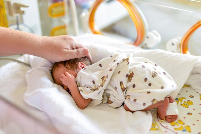 Fünf Wochen vor dem errechneten Termin entschieden sich die Ärzte zu einem Kaiserschnitt, weil das Kind sich nicht weiterentwickelte. Im Kreißsaal bat ich die Hebamme, unser Kind bei akuter Lebensgefahr sofort notzutaufen. Mein Mann durfte während der Entbindung dabei sein. Auch er war extrem angespannt. Und dann ...