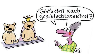 Zunächst einmal gilt es für Eltern also, sich ihr eigenes (oft unbewusstes) Verhalten und das Rollenmodell anzuschauen, das sie selbst ihren Kindern vorleben. Auf dieser Grundlage können sie sich dann mit der Übermacht der Spielzeug- und Kleidungsindustrie auseinandersetzen, die Kindern Unmengen von Lillifee-, Hello-Kitty-, Cars- und Bayern-München-Produkten andient und sie so in Geschlechter-Schubladen sperrt. Gutes Durchhaltevermögen, Kreativität und ein wacher Verwandten- und Freundeskreis gehören dazu, um hier öfter mal die Bremsleine zu ziehen.