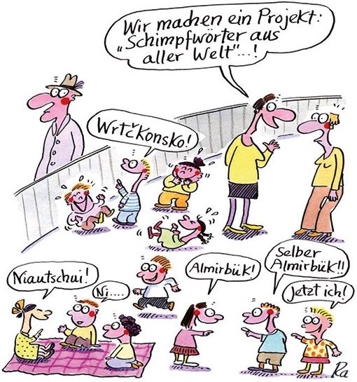 Von sich aus verstehen Kinder ungewohntes Verhalten von anderen erst einmal als individuelle Eigenheit und nicht als „typisch“ für deren Herkunft. Nesrin futtert in der Pause Fladen statt Butterbrote – na und? Lukas hat immer Müsliriegel dabei … Und dass Emeka kein Wort Deutsch spricht – Urs, dessen Familie gerade aus der Schweiz zugezogen ist, verstehen die anderen Kinder manchmal auch nicht. Andere deshalb in Schubladen wie „Afrikaner“, „Türken“, „Russen“ oder „Asylbewerber“ einzusortieren, wäre den meisten Kindern bisher nicht eingefallen.